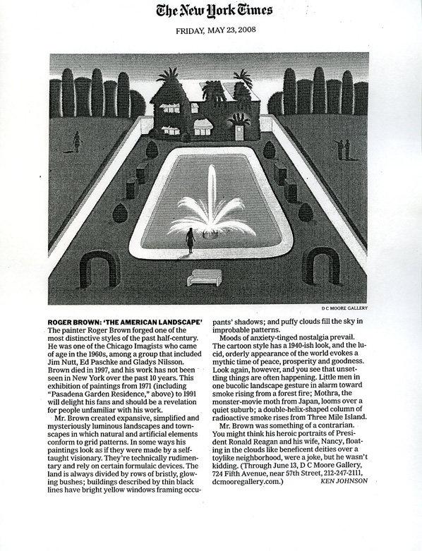 In 1972, Brown was featured in the book Fantastic Images: Chicago Art Since 1945 by Franz Schultz, which brought increased recognition to his work. The same year, he began a close relationship with architect George Veronda, and at this time architecture and landscape became integral elements of his art. In 1974, Brown purchased and renovated a storefront in Chicago that became his first home, studio, and collection environment. Later in the decade, he commissioned Veronda to design a home and studio for a Lake Michigan dunes property that he had purchased in New Buffalo, Michigan. For several years, Brown divided his time between Chicago and New Buffalo, where he assembled a second collection of art and objects.