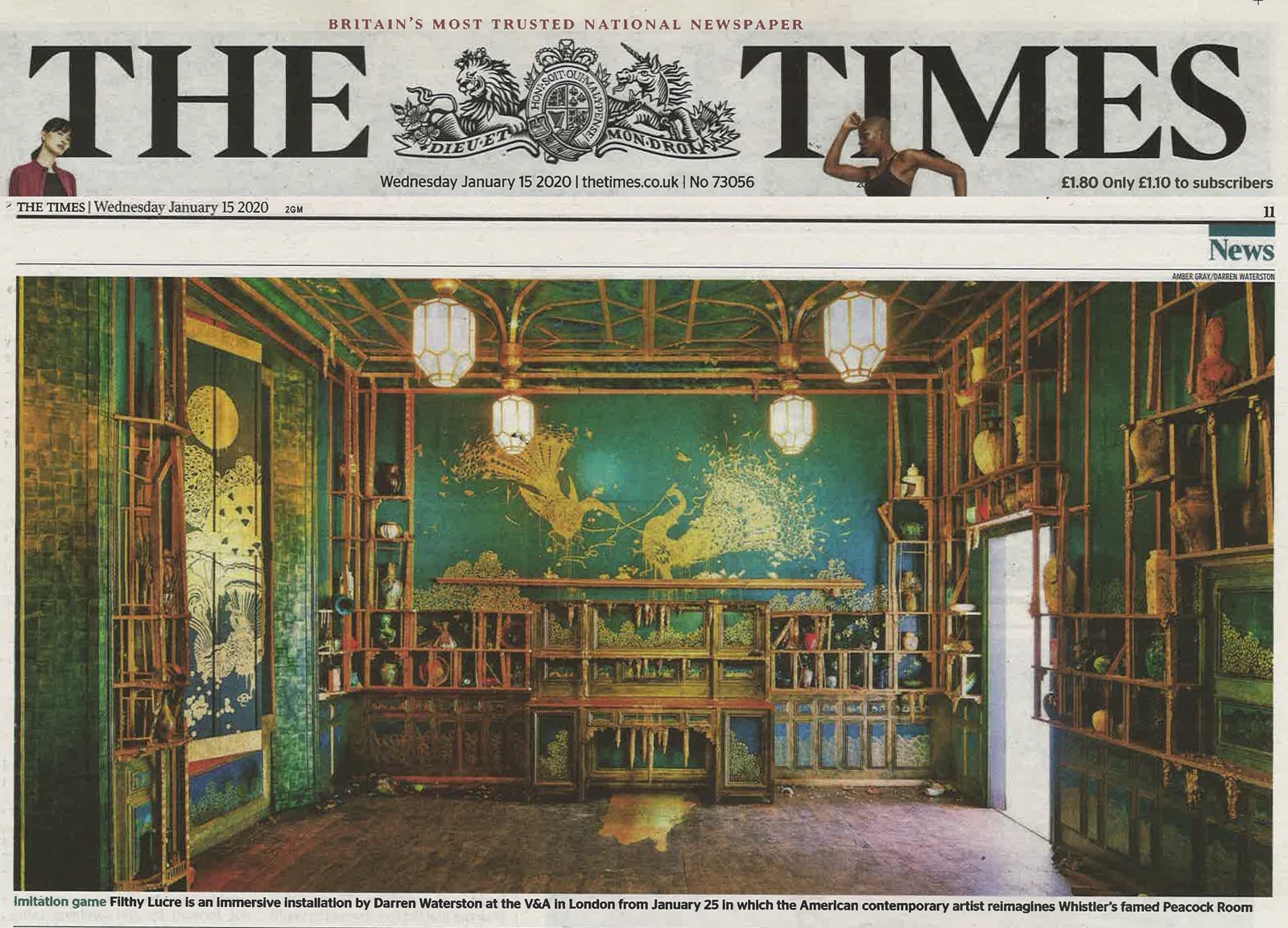 Darren Waterston graduated with a BFA from the Otis Art Institute/Parsons, having previously studied at the Akademie der Künste and the Hochschule für Bildende Künste, both in Germany. In 2020, the Victoria & Albert Museum in London opened Darren Waterston's Filthy Lucre: Whistler's Peacock Room Reimagined, a detailed and decadent interpretation of James Abbott McNeill Whistler's famed Peacock Room, a sumptuous 19th-century interior.