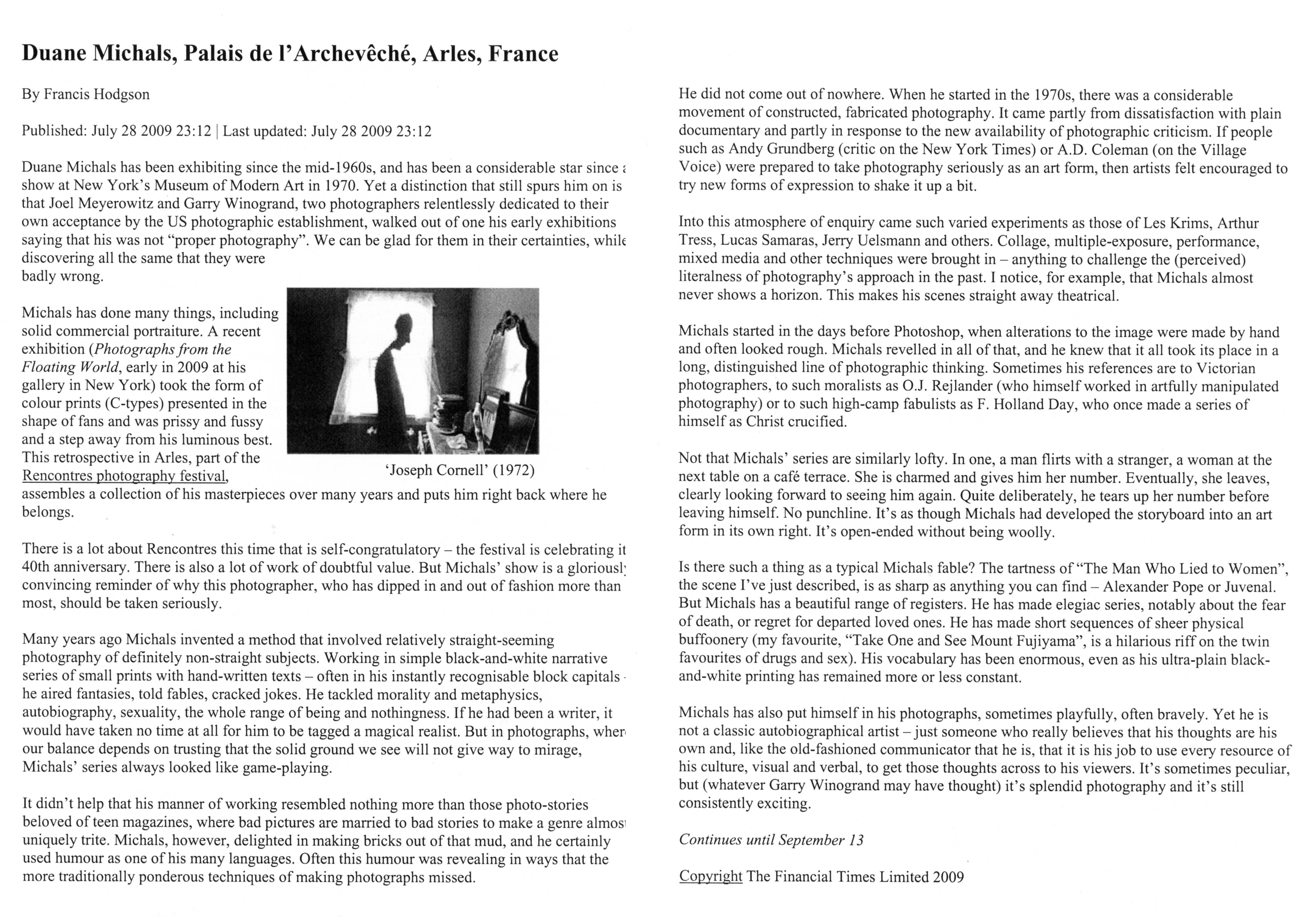 The Financial Times: Duane Michals, Palais de l'Archeveche, Arles, France by Francis Hodgson